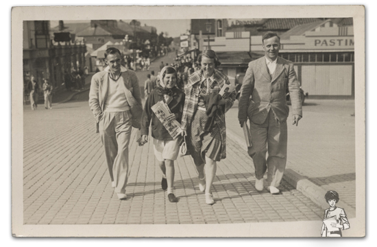 Off for a read... We do not know who this family are, but the photograph was taken at Mablethorpe on a walkway known locally as 'The Pullover', which took visitors up from the town, over the dunes and onto the seafront. Dad has a daily paper, mum is carrying handbag and a camera in one hand and clutching a serious fashion magazine under her other arm. Daughter has a handful of new comics and Uncle has a book, so it looks like a serious reading session in deckchairs is on the cards.
