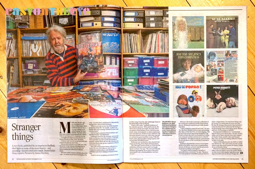 Yorkshire Post spread view Published January 26, 2024 at 1505 × 1000 in Yorkshire Post spread view The Art of The Vinyl Sleeve Yorkshire Post newspaper article, easy on the eye books, Simon Robinson, Steve Goldman, album design history