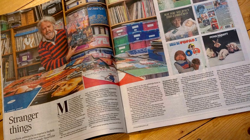 YP spread 4648 Published December 18, 2023 at 1200 × 674 in YP spread 4648 Art of The Bizarre Vinyl sleeve, two page article, Yorkshire Post, easy on the eye books, simon robinson